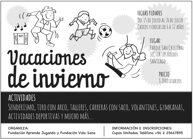 La respuesta correcta es: Actividades de vacaciones de invierno.