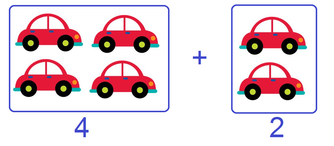 La operación que permite saber cuántos autos tiene ahora es 4 + 2.