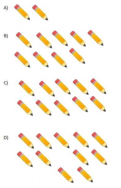 Para encotrar la alternativa correcta debes contar los lápices de cada conjunto. Utilizar la estrategia de tachar y contar puede ser de utilidad para no contar más de una vez un mismo elemento.