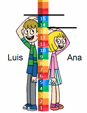 Al observar la imagen podemos notar que Luis mide 15 bloques mientras que Ana mide 13 bloques: