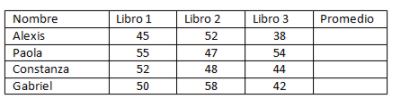 Calcula el promedio de tiempo que cada uno se demoró en leer los tres libros y completa la tabla.