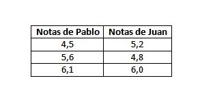 La mamá de Juan y de Pablo lleva un registro de las notas de sus hijos en Matemática.