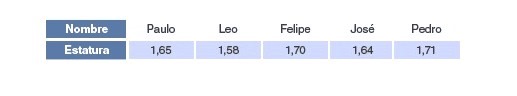 El equipo de basquétbol de un colegio está compuesto por 5 estudiantes cuyas estaturas se muestran a continuación: