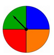 Observa la imagen de una ruleta de colores que está dividida en partes iguales: