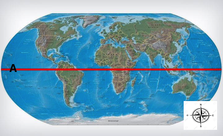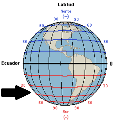 La flecha de la imagen señala hacia la parte inferior de la línea del Ecuador correspondiente al hemisferio Sur.