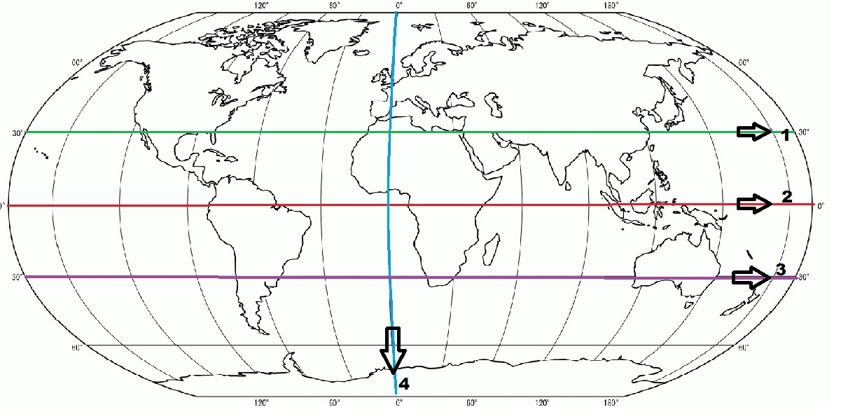 La línea del Ecuador es una línea imaginaria que divide a la tierra en dos hemisferios norte y sur. Por lo tanto, en la imagen es el número dos el que nos señala la línea que cubre el círculo del Ecuador.