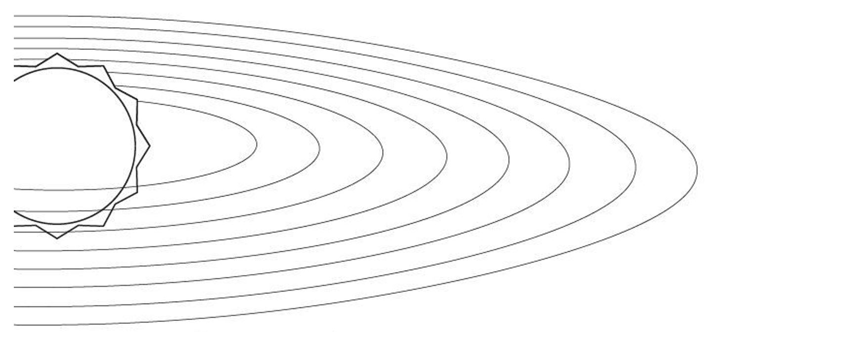 A continuación se le presenta un modelo del Sistema Solar, dibuje los planetas alrededor del sol en la órbita correspondiente y escribe sus nombres.