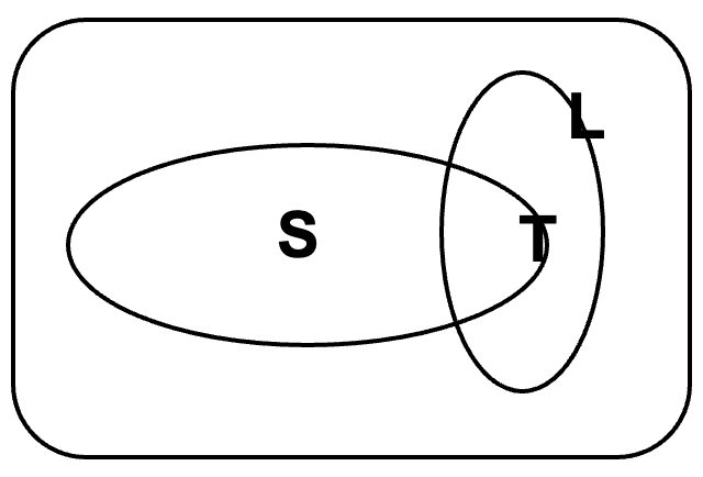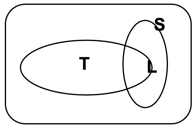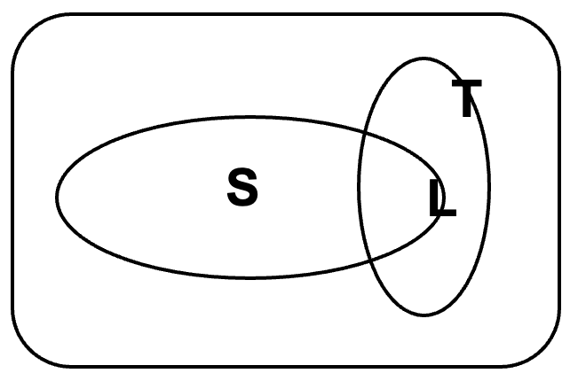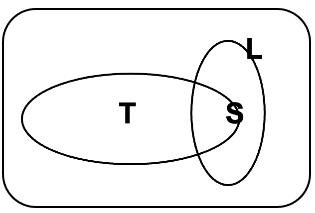 Las siguientes opciones muestran modelos, donde la posición del Sol (S), la Tierra (T) y la Luna (L) se encuentran señaladas con las iniciales de estas palabras, y sus orbitas con un círculo.