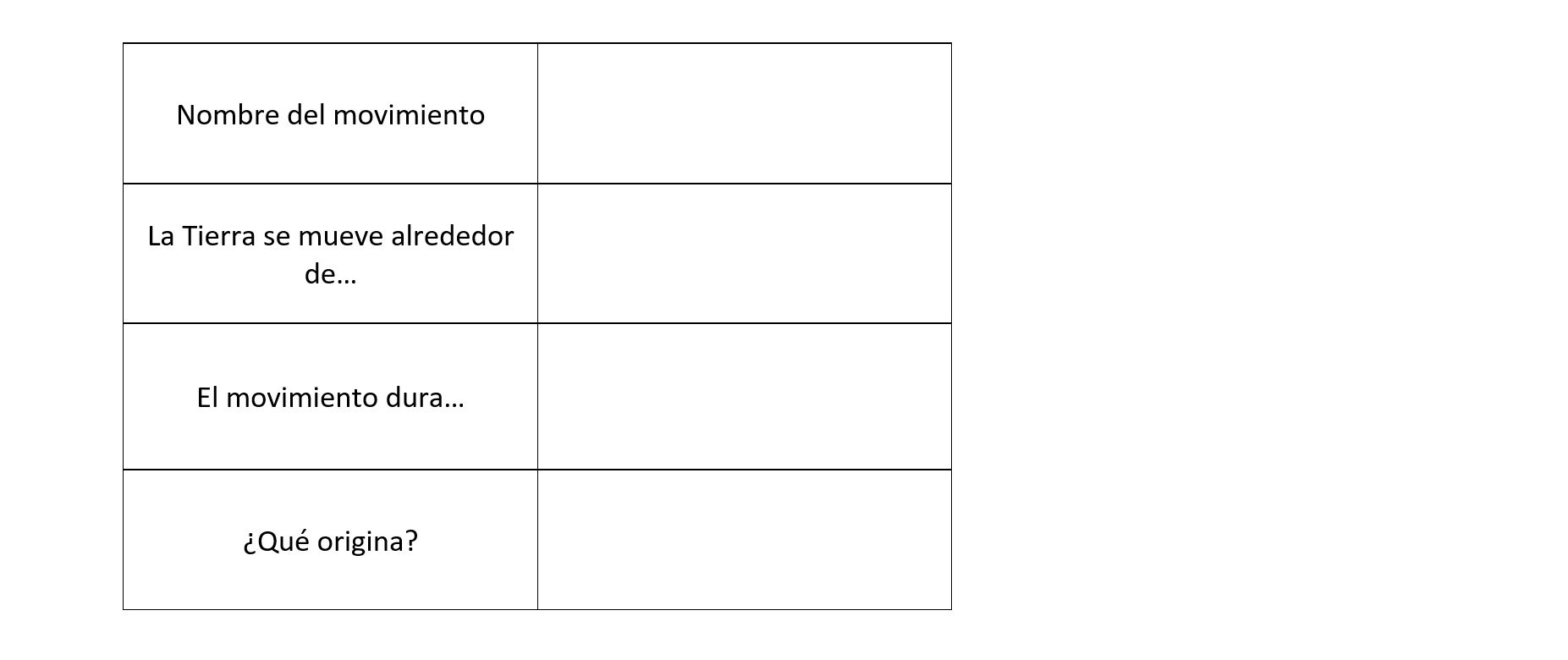 En la imagen se puede observar el movimiento de la Tierra alrededor del Sol. En relación a este desplazamiento de nuestro planeta completa la siguiente tabla: