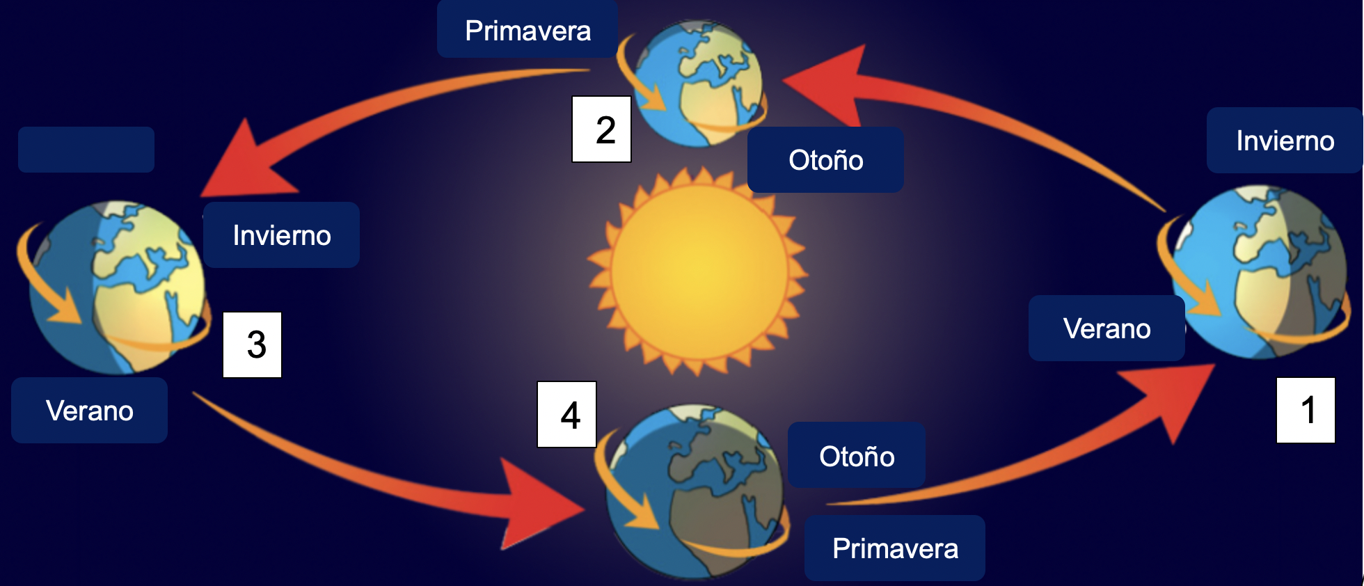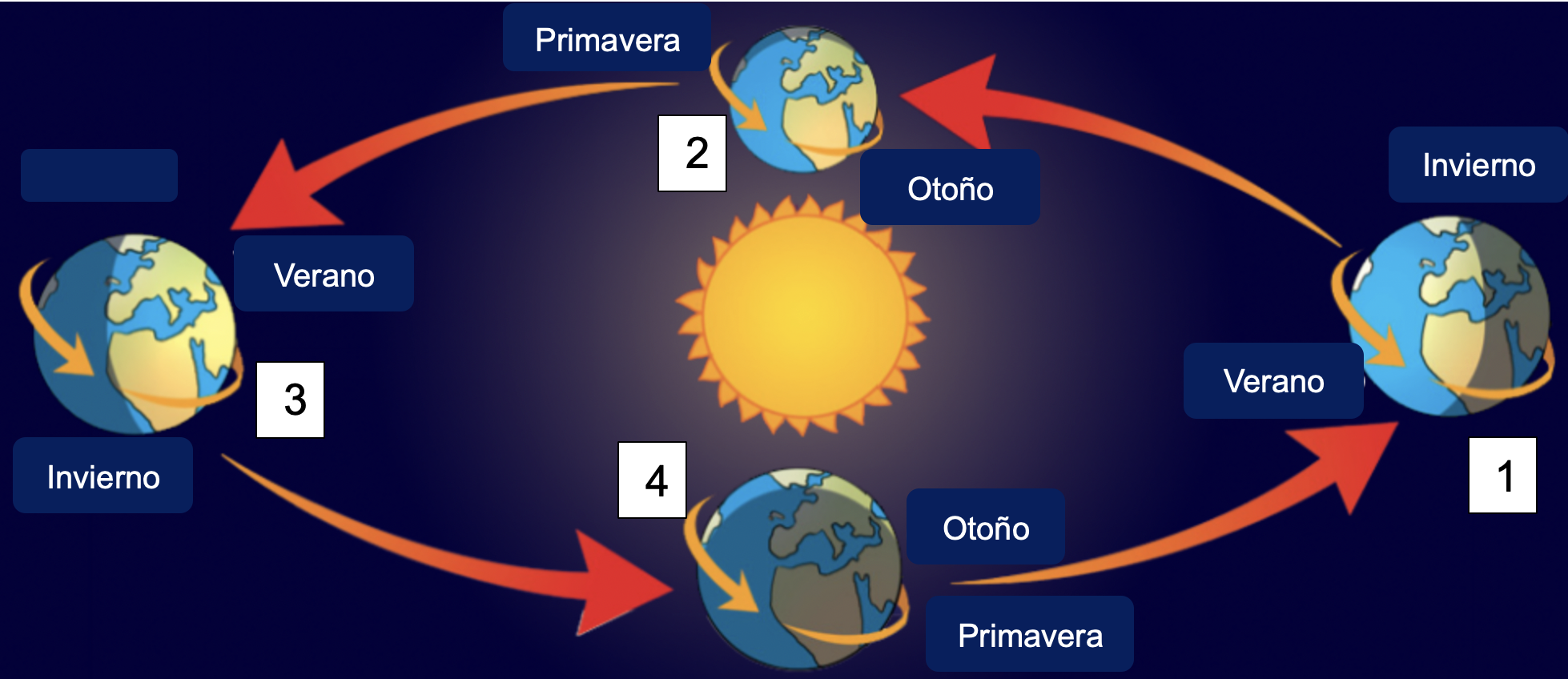 En el esquema el error se encuentra en el 3 ya que el orden correcto de las estaciones partiendo en el polo norte de la Tierra es:
