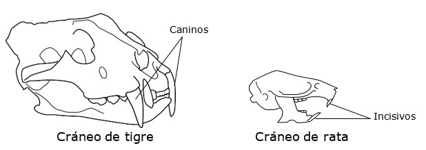 Las siguientes imágenes muestran el cráneo de un tigre y el de una rata.