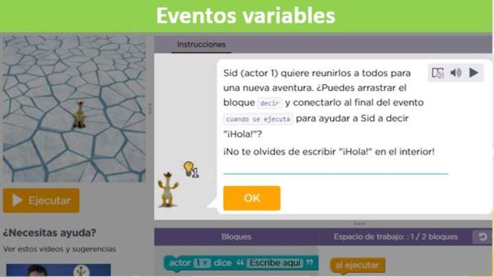 Para trabajar estos Objetivos de Aprendizaje se propone que a partir de la lección 13, 16 y 17 del curso F, incluido en el programa Fundamentos, los estudiantes puedan resolver problemáticas y tareas siguiendo una sucesión lógica que les permita continuar relacionándose con la programación computacional, conociendo y utilizando conceptos básicos como son los eventos y las variables en el contexto de la asignatura de Tecnología.