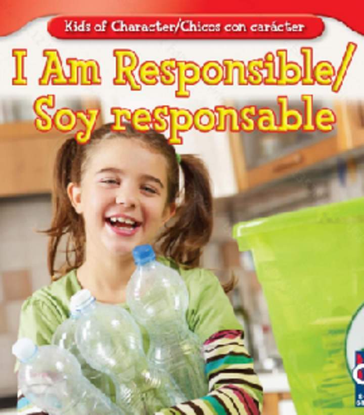 Texto informativo, ilustrado con fotografías que describe acciones concretas que demuestran responsabilidad en la escuela, hogar y en la comunidad.