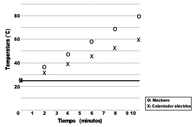 A partir de lo anterior, utiliza la información del gráfico para explicar cuál fuente de calor calentó más rápido el agua.