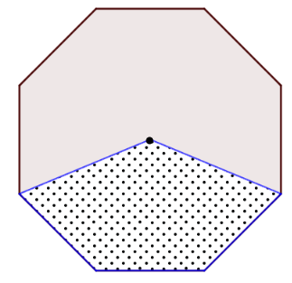 Observa el siguiente polígono regular que tiene marcado su centro con un punto y parte de su superficie es blanca con puntitos.