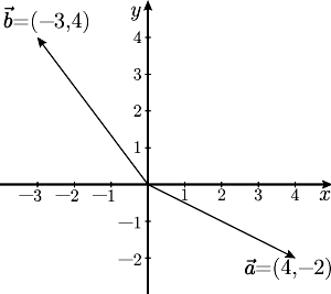 Considere los vectores $\vec{a}$ = (4, -2) y $\vec{b}$ = (-3, 4) como los que se observan en la siguiente figura: