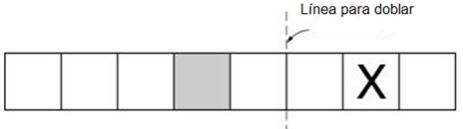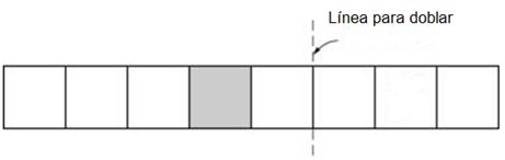 Escriba una X en uno de los cuadrados de abajo, de tal manera que si la tira de papel es doblada donde lo indica la línea, el cuadrado con la X que usted marque cubra al cuadrado sombreado.