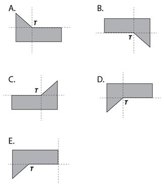 A la figura sombreada se le aplica un medio giro sobre el punto T del plano.