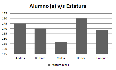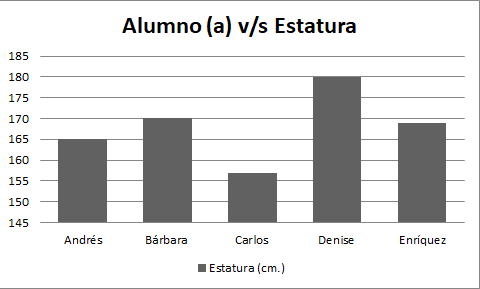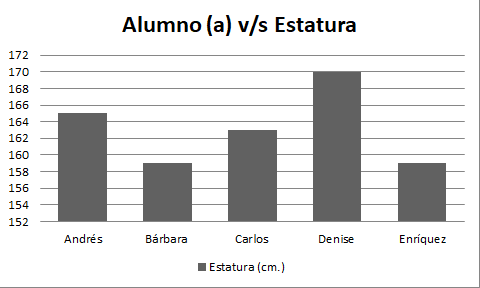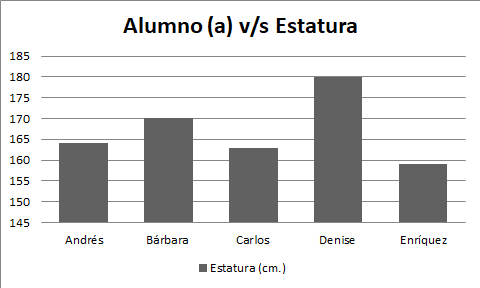 La tabla muestra la estatura de cinco alumnos(as) del $8^{\circ}$A: