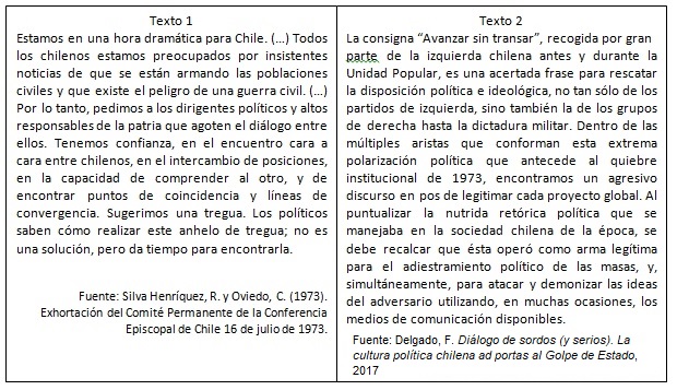 Los textos anteriores, muestran dos visiones en relación a la crisis política de 1973 en Chile. El primero corresponde a una fuente primaria, mientras que el segundo texto corresponde a una fuente secundaria. Teniendo en consideración la lectura de ambos, ¿qué análisis se puede(n) establecer en relación a lo expresado por los autores?