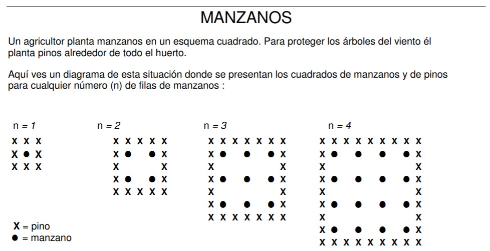 Respuesta correcta (manzanos) con ALGUNA evidencia que es entendida la relación $n^{2}$ y $8n$ pero no es claramente expresada como en las respuestas de puntaje completo.