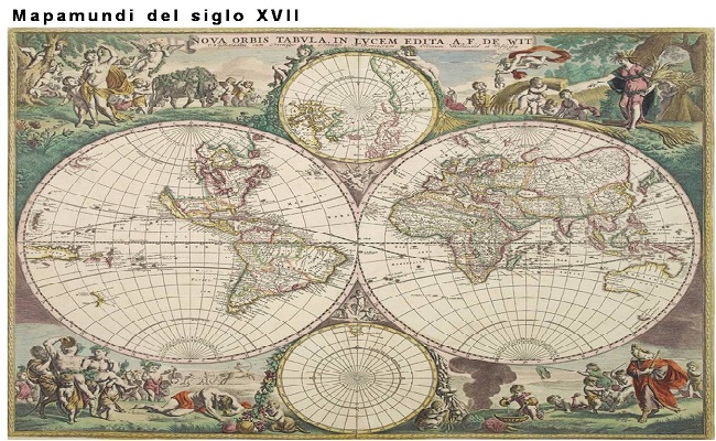 | Mapamundi del siglo XV | Mapamundi del siglo XVII |