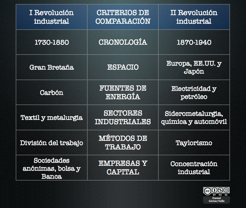 Cuadro comparativo entre la primera y la segunda revolución industrial