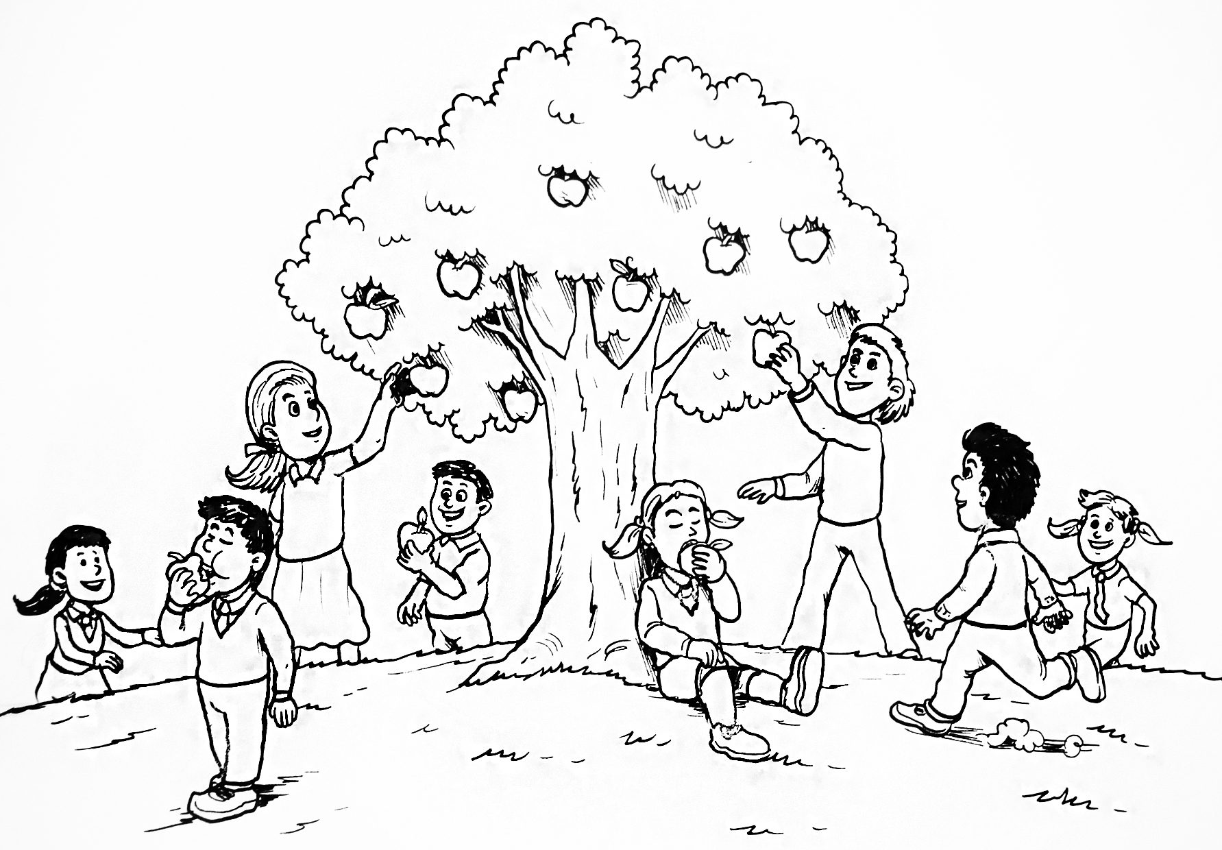 Ilustración sobre el derecho a vivir en un medio ambiente libre de contaminación (blanco y negro)