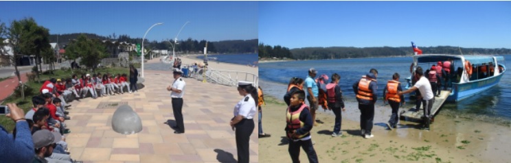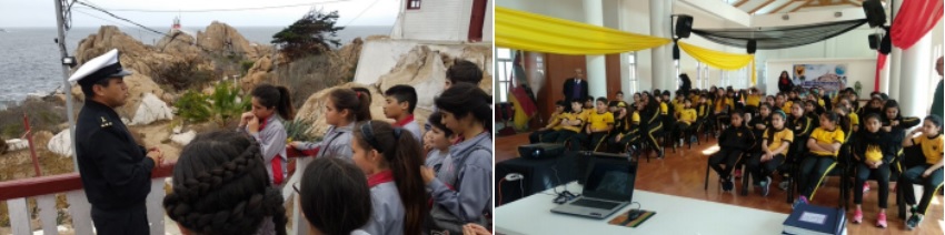 Las comunidades educativas por lo general no conocen de los productos marinos que se generan en la actividad laboral marítima, es por esta razón que la fundación Mar de Chile organiza visitas a distintas instituciones que se relacionan con la actividad naval y marítima.