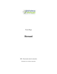 Obra teatral que describe la tragedia del bandido Hernani y su amante Doña Sol. Es una obra propia del movimiento literario y artístico romántico.