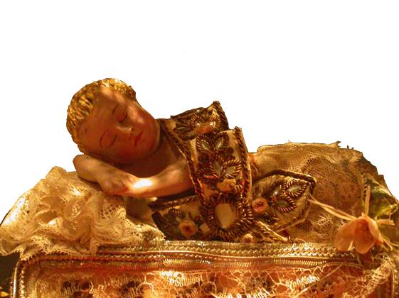 Imagen de escultura de niño Jesús en un fanal Colonial.