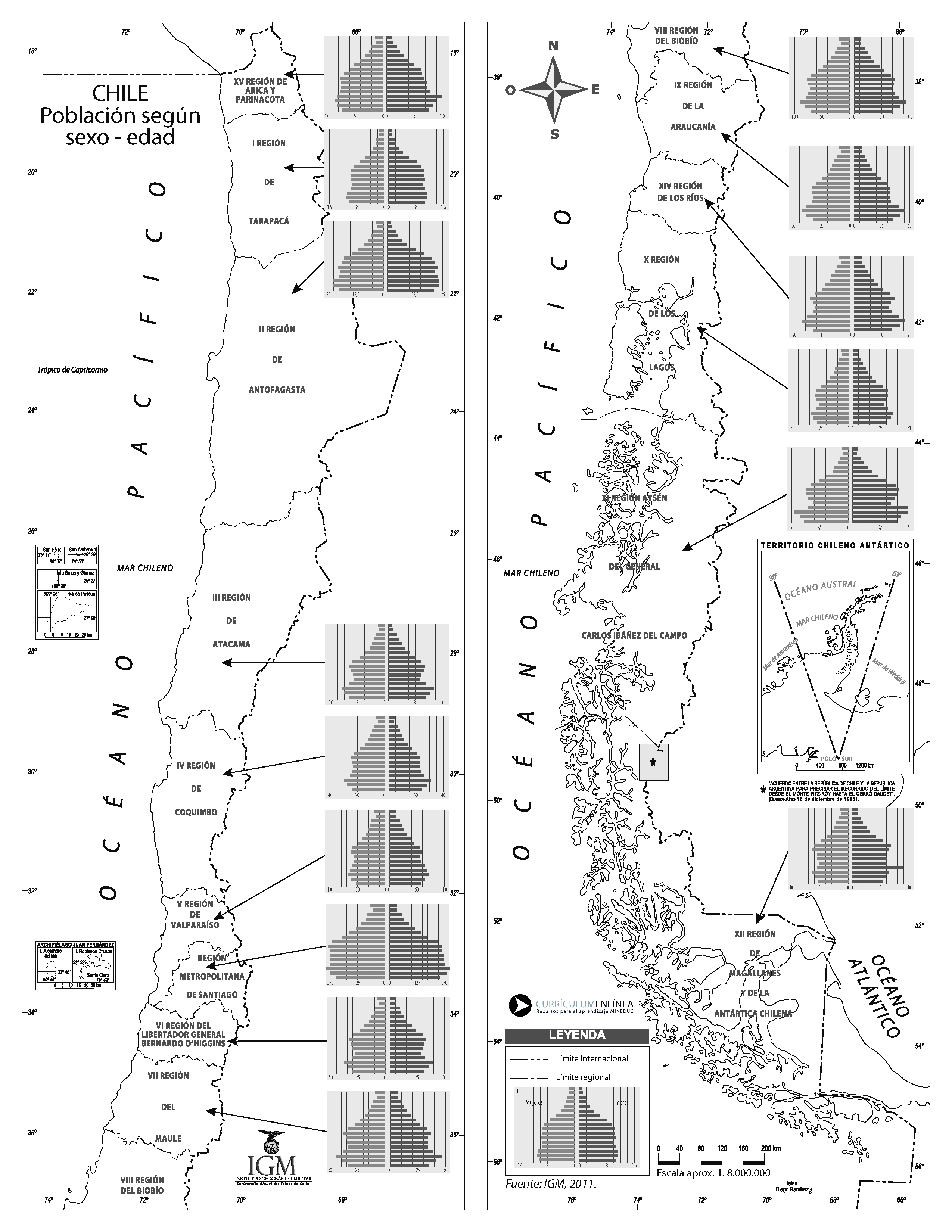 Mapa con la población de Chile según su sexo y edad