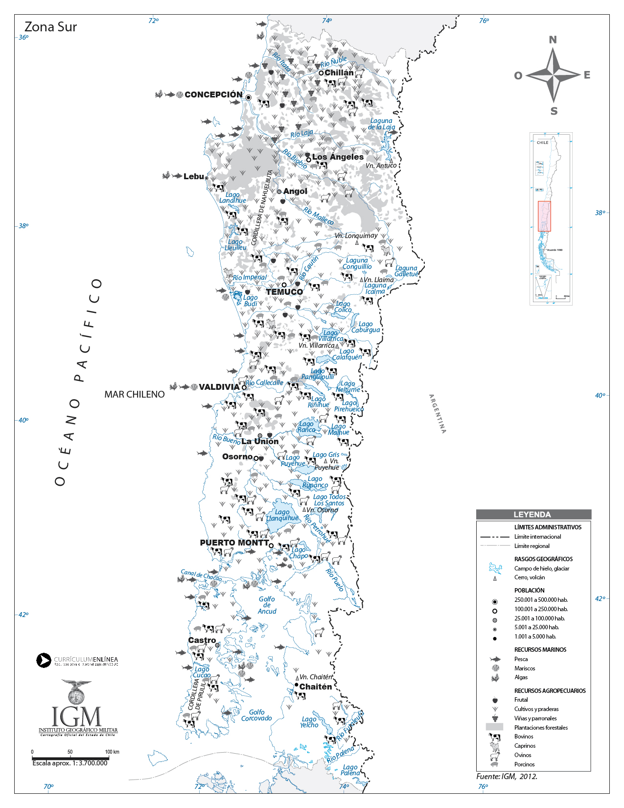 Mapa de la zona Sur y sus características