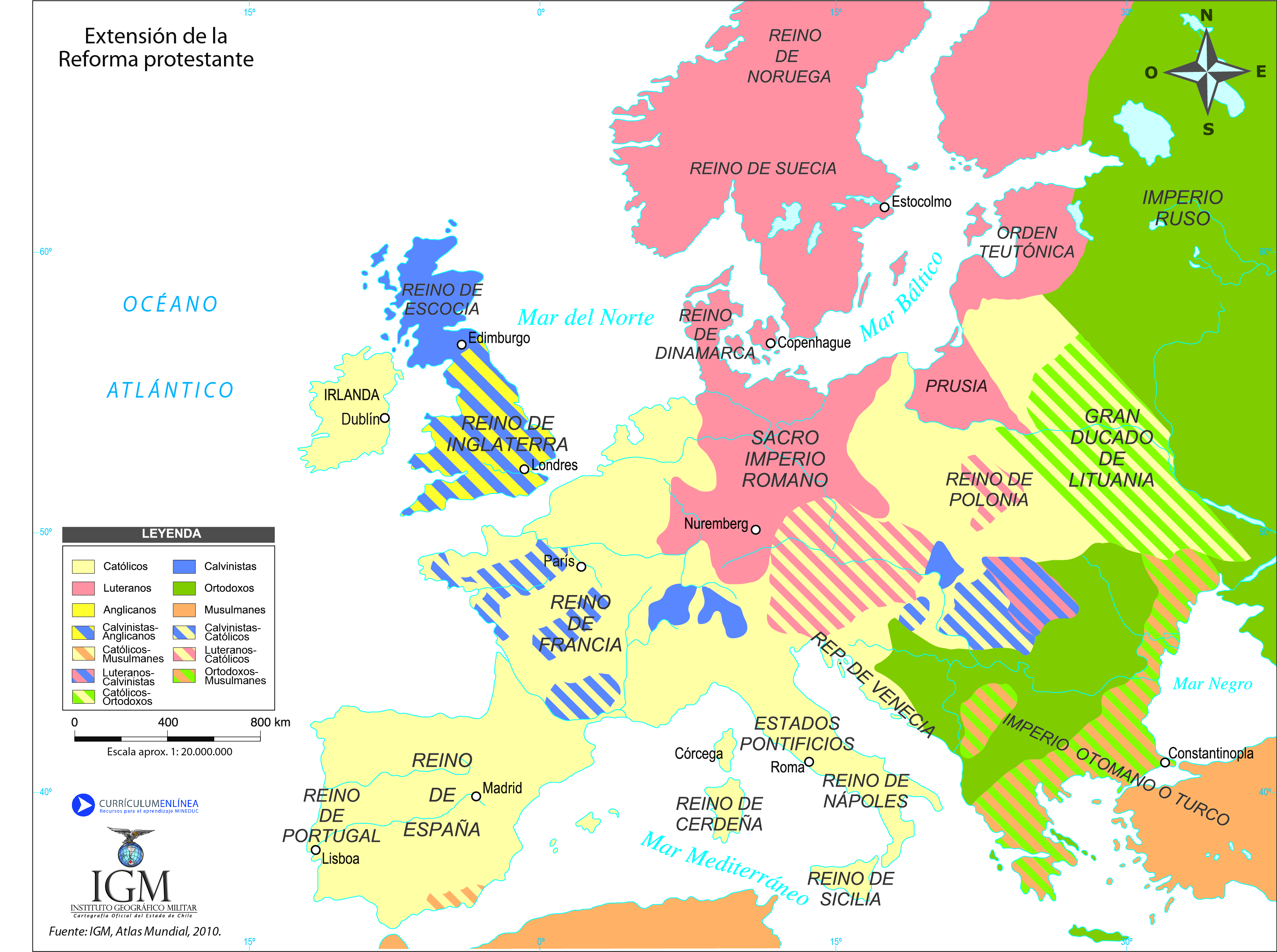 Mapa con expansión de las iglesias protestantes en Europa