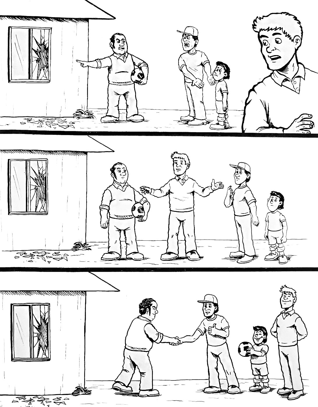 Ilustración que muestra cómo enfrentar y solucionar un problema (blanco y negro)
