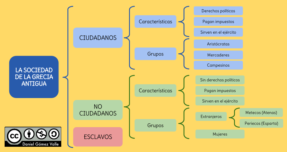 Mapa conceptual sobre los diferentes grupos sociales griegos