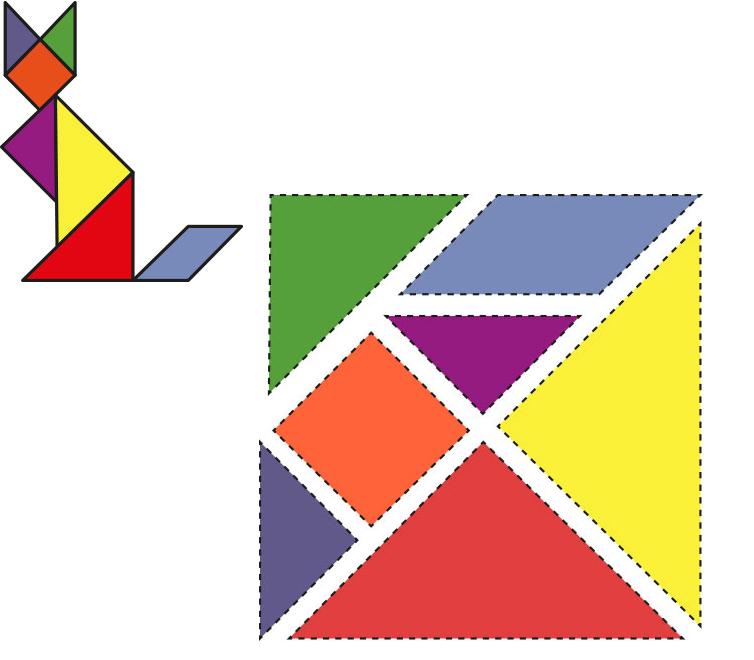 Imagen de un tangrama recortable que permite armar diferentes figuras.